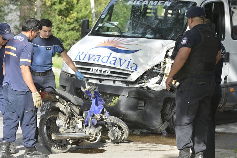El hecho sucedió a las 15:52, en la intersección de las calles Leandro Alem y Mariano Moreno, de Rivadavia, donde una Trafic Iveco Daily (sin dominio) colisionó de frente a una moto Yamaha Crypton 110 cc (CPZ 072) conducida por María Soledad Barrios, de 23 años, quien llevaba a su hijo Lautaro (7) y sus hermanitos Diego (10) y Mario (11).