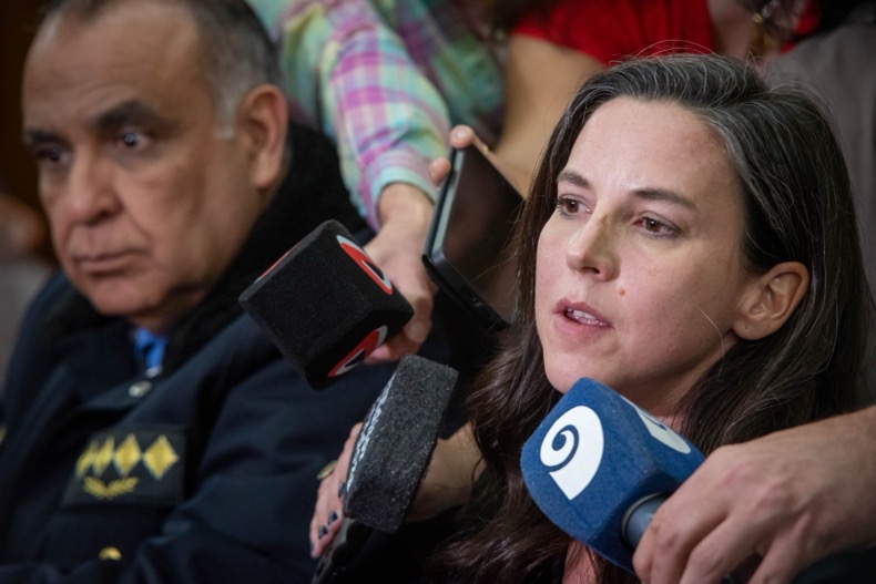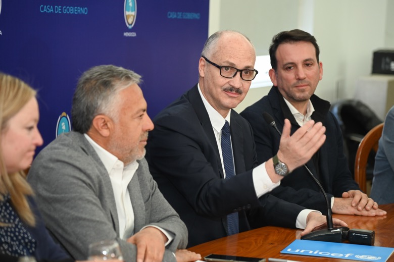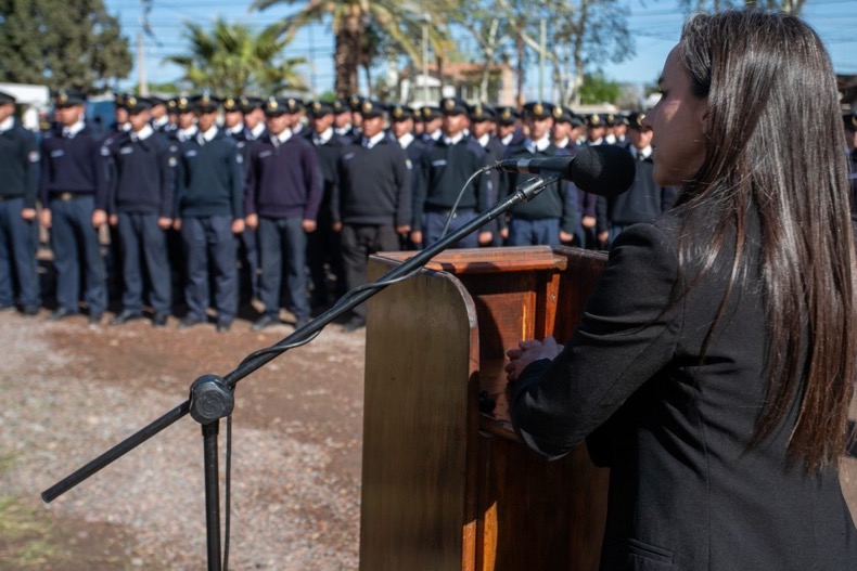 El gobernador Alfredo Cornejo y la ministra de Seguridad, Mercedes Rus, presentaron nuevas camionetas, pistolas y escopetas para la fuerza policial mendocina.