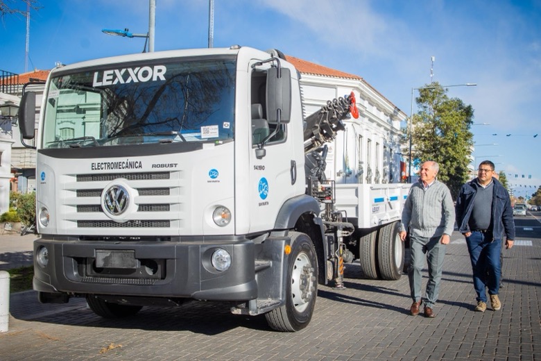 Se trata de una flamante hidrogrúa que cuenta con equipamiento para realizar diversas funciones, que incluyen el tendido eléctrico de alta y baja tensión o el levantamiento de postes de hormigón y madera.
