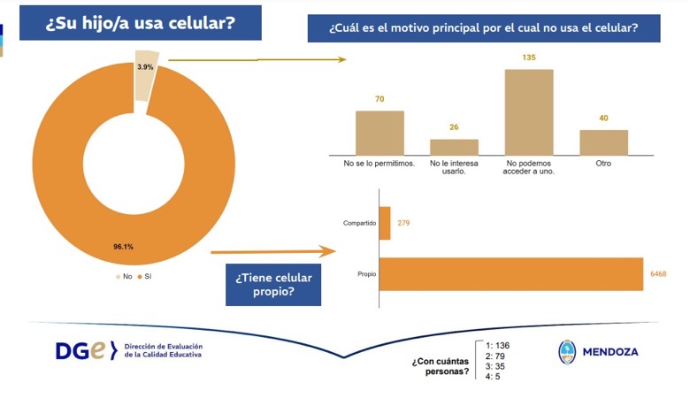 Ante esta realidad, la Dirección General de Escuelas (DGE) realizó una encuesta que alcanzó a 2.261 docentes, 10.405 estudiantes y 7.018 familias de toda la provincia, que deja algunas conclusiones claras. Una de ellas es que la mayoría de los docentes y familias mendocinas reconocen el valor educativo que puede proporcionar la tecnología en el aula y consideran que es conveniente ordenar su utilización.