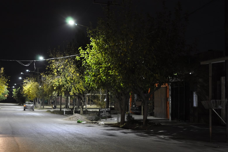 Ya se dejaron en funcionamiento luminarias led en calle Tropero Sosa, entre Ruta Nacional 7 y Carril Norte y, por otro lado, se encendieron las nuevas luces en el barrio Cristo Hermano y Amupol.