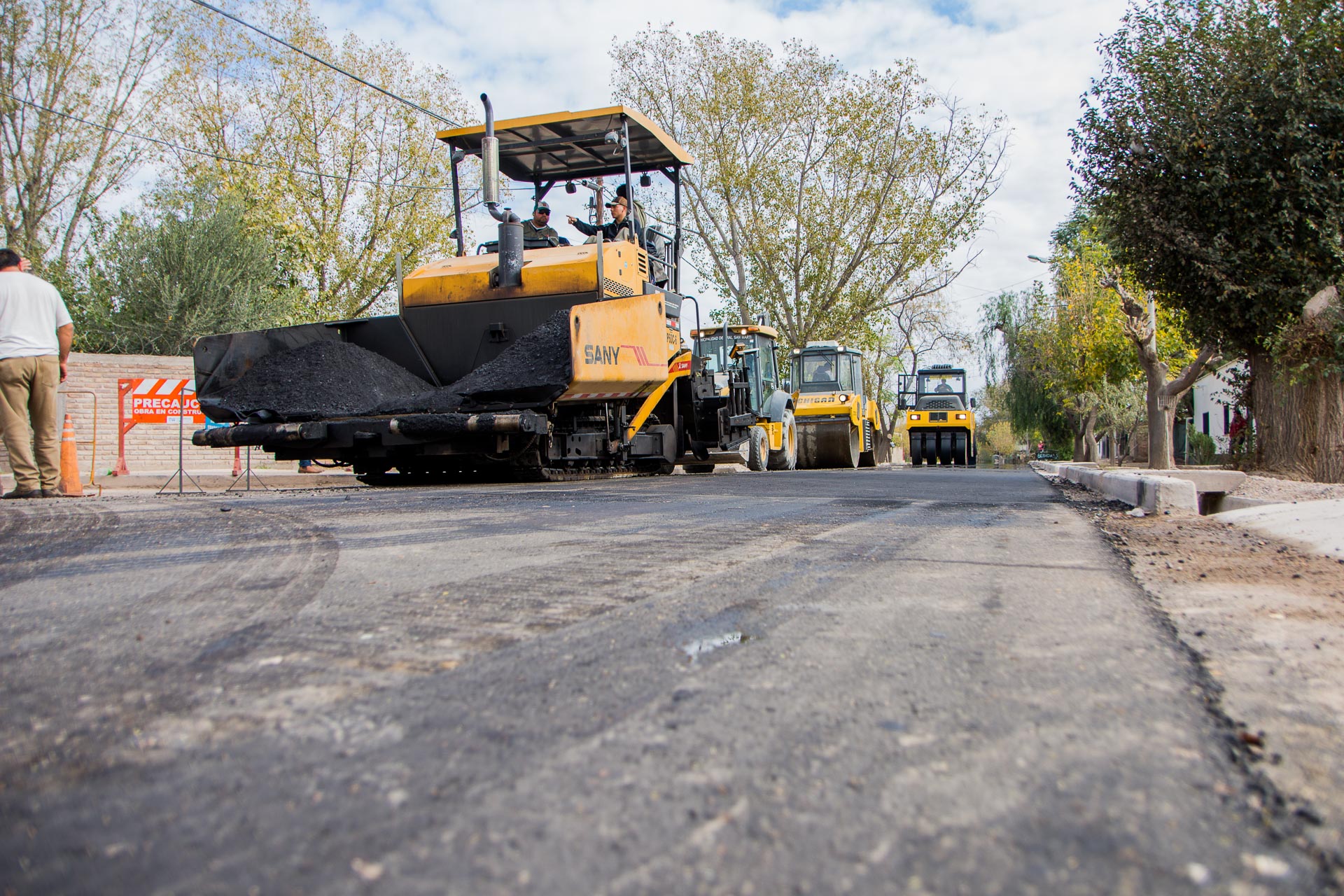 El equipo de obras municipales impermeabiliza con material asfáltico las calles Cardenal Samoré Y 16 de Septiembre, en la zona norte de la Ciudad de San Martín. Benefica a unas 200 familias.