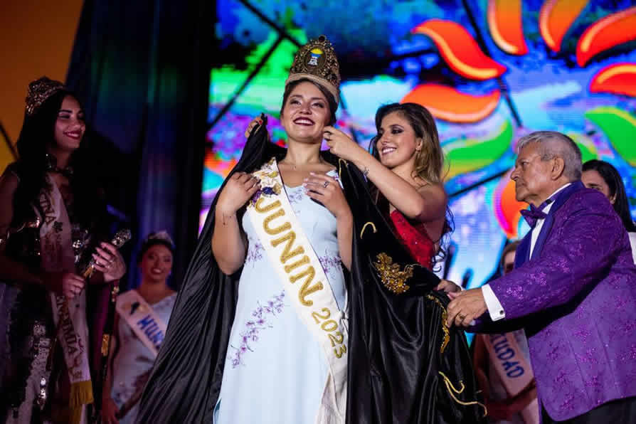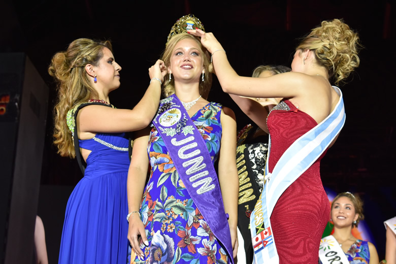 La joven de 22 años representó al distrito Rodríguez Peña. Fue coronada tras el espectáculo “Raíces de Junín” en el parque Dueño del Sol. Más de 40 mil personas.
